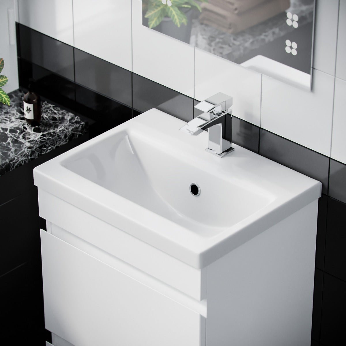 This beautiful 500 mm white gloss freestanding basin vanity unit comes complete with a high-quality countertop basin.
