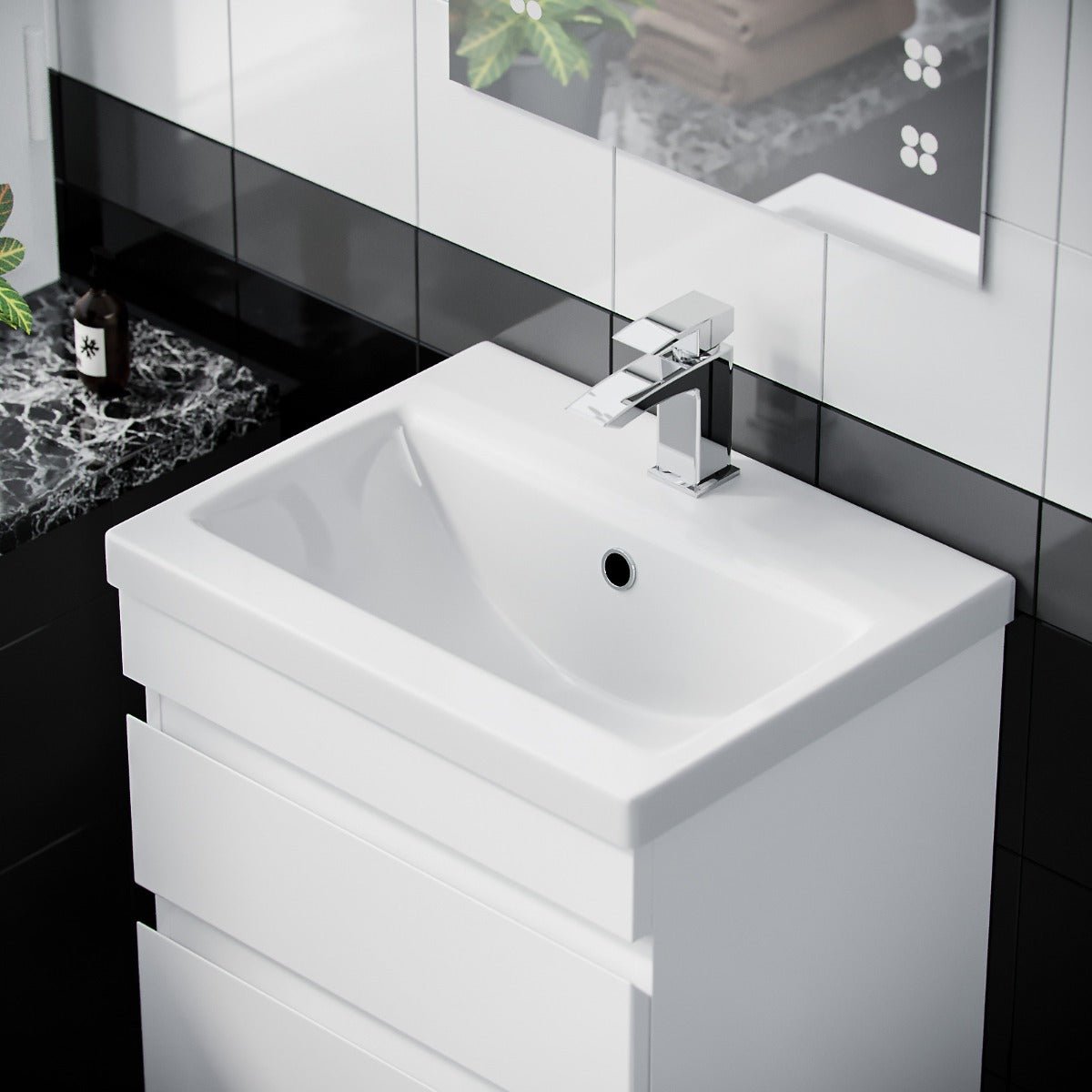 This beautiful 500 mm white gloss Wall Hung basin vanity unit comes complete with a high-quality countertop basin.