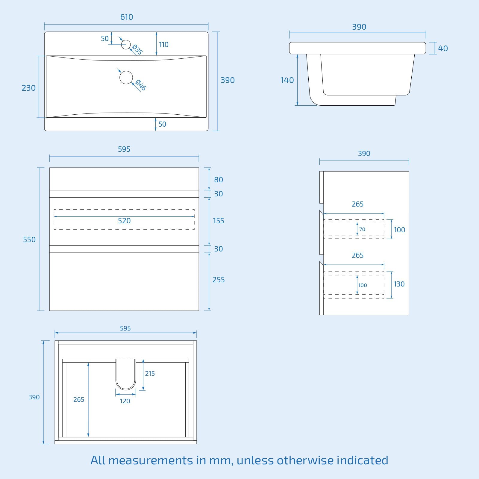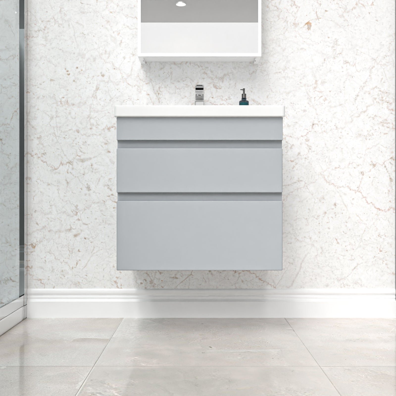 Introducing the Hardie 600mm 2 Drawer Wall Hung Vanity Cabinet and Basin Sink Unit. This stylish and practical bathroom storage solution features a stunning 600 mm matt grey wall-hung basin vanity unit. It comes equipped with a high-quality countertop basin. designed for everyday use. With its durable construction and exquisite gloss finish. our Basin Vanity Unit offers the perfect blend of functionality and elegance. Upgrade your bathroom with this beautiful and reliable addition.