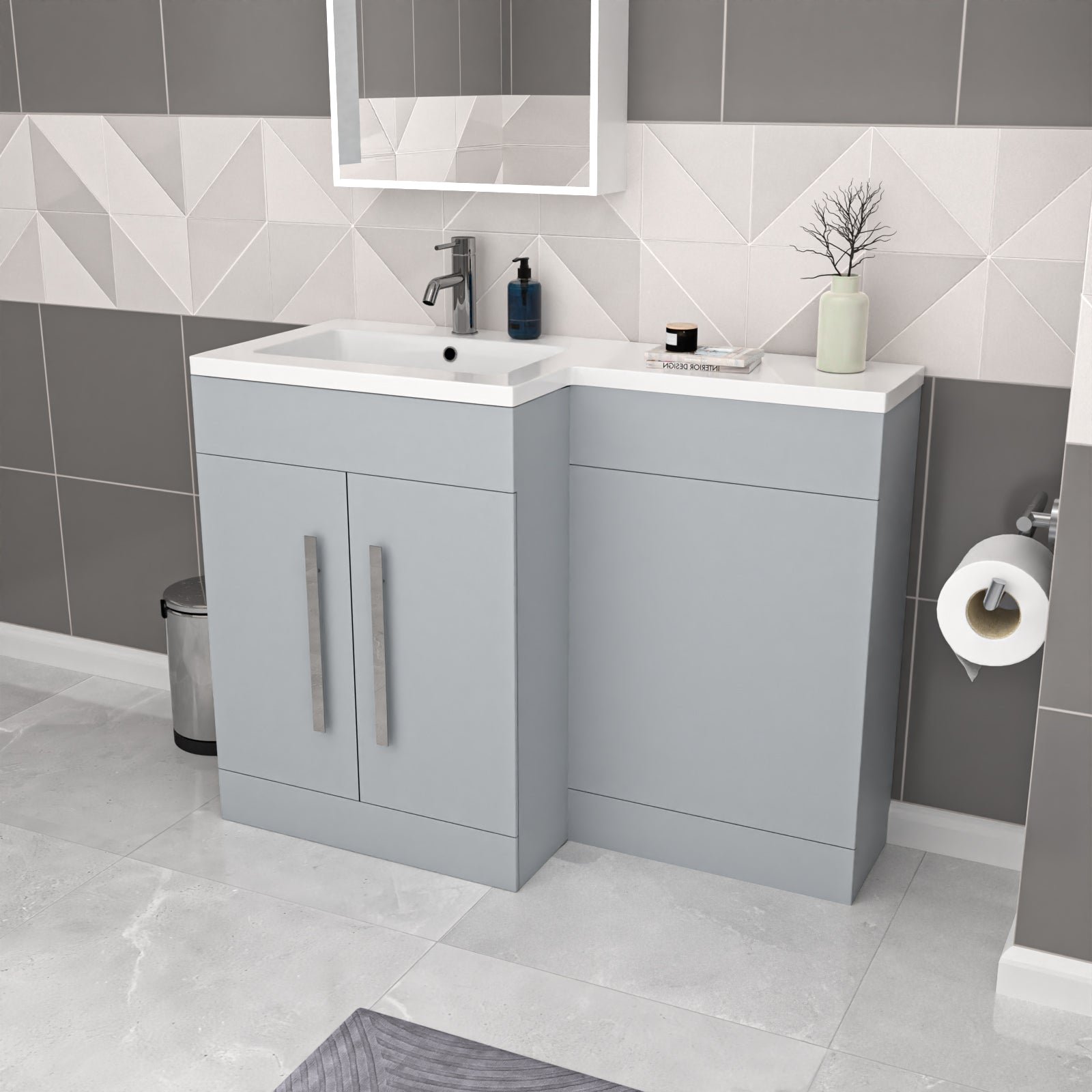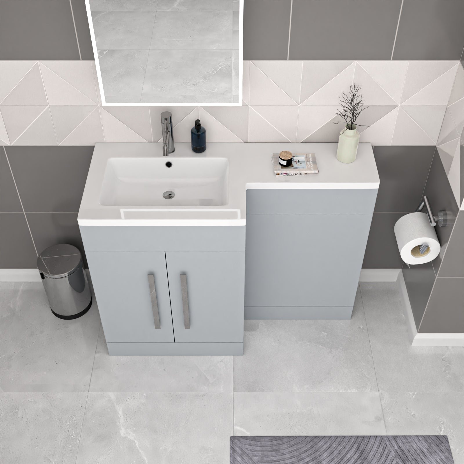 It features a white resin basin top. with a two door water resistant MDF cabinet. WC unit and contemporary chrome effect handles. bringing a modern look to your bathroom. The basin includes an overflow and one tap hole. The contemporary design hides all unsightly pipework creating a neat clean look.