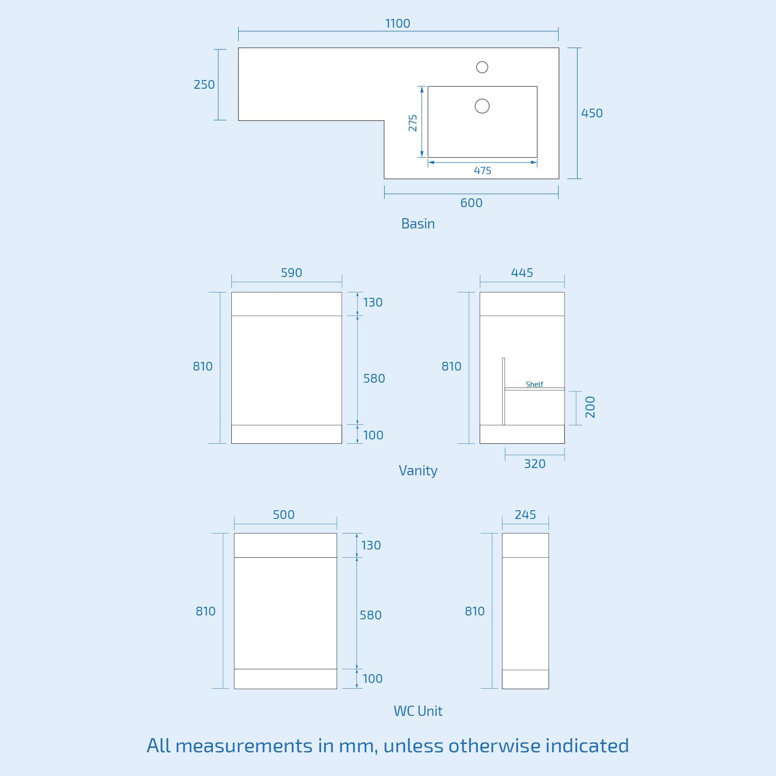 It features a white resin basin top. with a two door water resistant MDF cabinet. WC unit and contemporary chrome effect handles. bringing a modern look to your bathroom. The basin includes an overflow and one tap hole. The contemporary design hides all unsightly pipework creating a neat clean look.