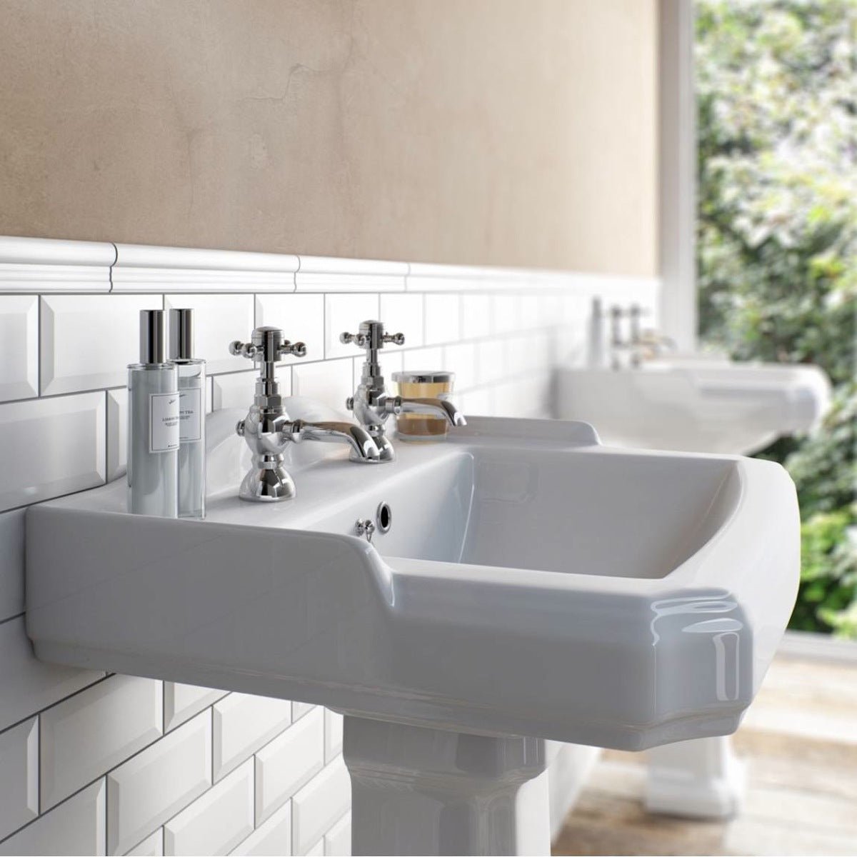 - Classic style twin basin taps