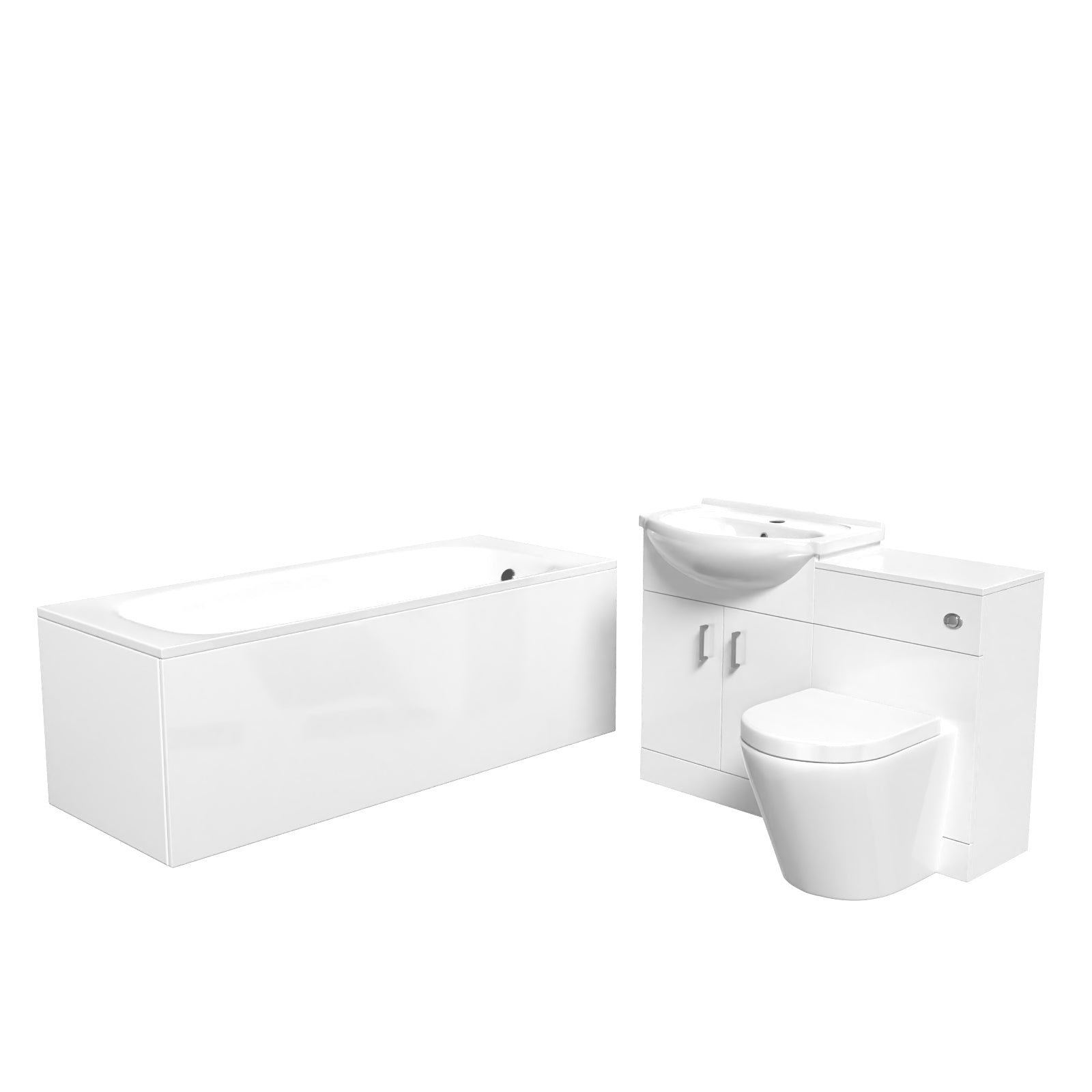 Ellen White Vanity Unit With Basin. WC Unit. BTW Toilet & 1700mm Bathtub