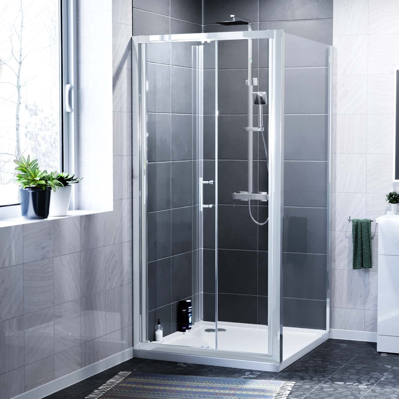 Jupiter Chrome Framed Shower Bi-Fold Door. Side Panel Enclosure & Tray