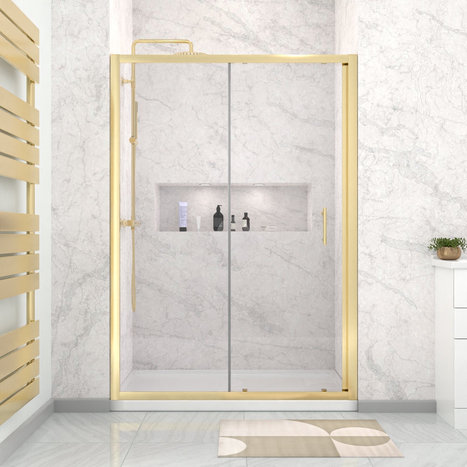 This shower enclosure glass sliding door comes in a brushed brass finish which gives a modern look to your bath or shower room. The sliding door is made from 6mm premium tempered glass with smooth operation. It is particularly useful as it will help you to save space by not opening out into the room. For easy installation of the sliding door. the aluminium frame allows for a 40 mm wall adjustment for when the walls are slightly out.