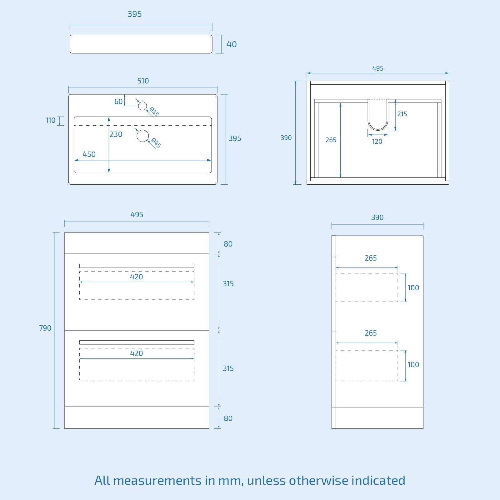 This beautiful 500mm Floor Standing 2 Drawer Vanity Unit comes complete with a high-quality basin. Our bathroom Drawer Cabinet & Sink Basin units are ideal for family bathrooms and add a touch of style to a practical space.