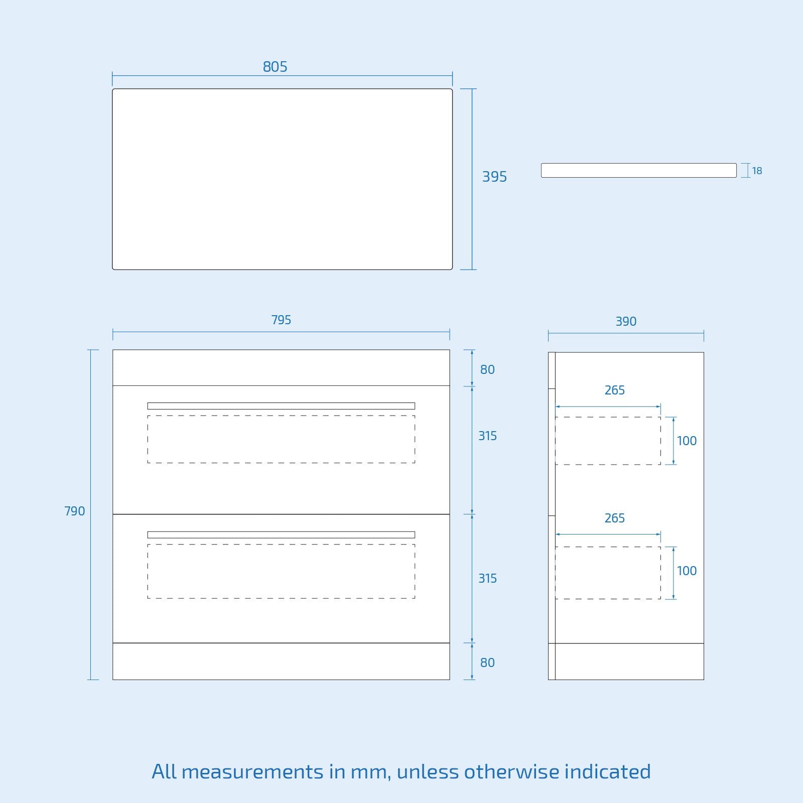 - Countertop Width: 805 mm