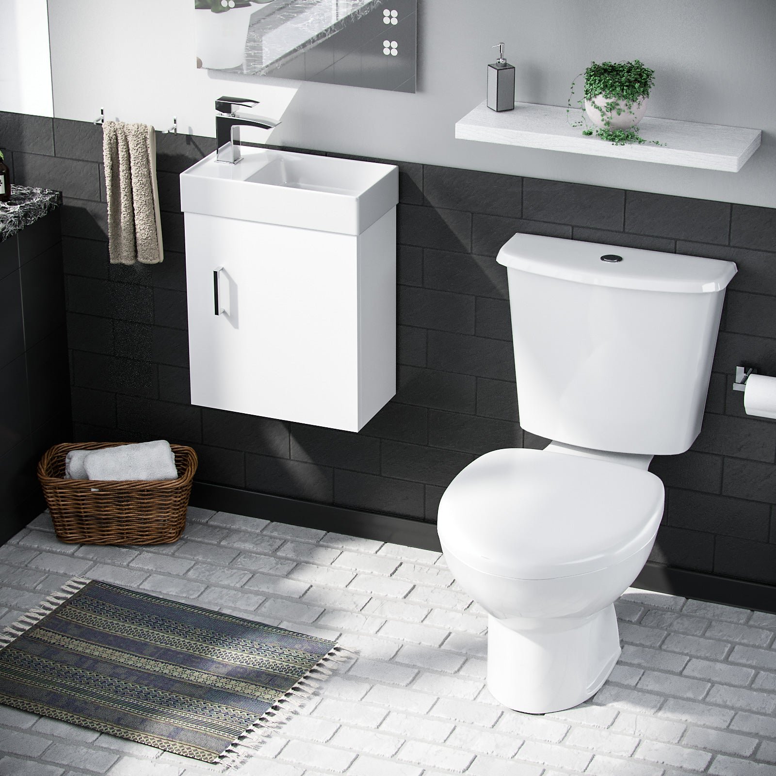 This beautiful 400 mm white gloss wall hung basin vanity unit comes complete with a high-quality basin and with a close-coupled toilet. Engineered with everyday use in mind. providing a storage solution for your bathroom. our Basin Vanity Unit gives you the best of both worlds. combining incredible durability and a beautiful gloss finish.