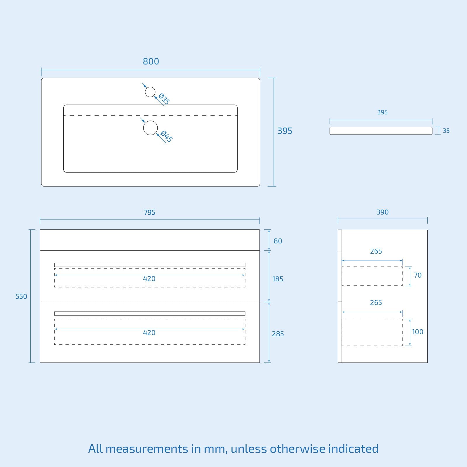 - Fully assembled Vanity unit