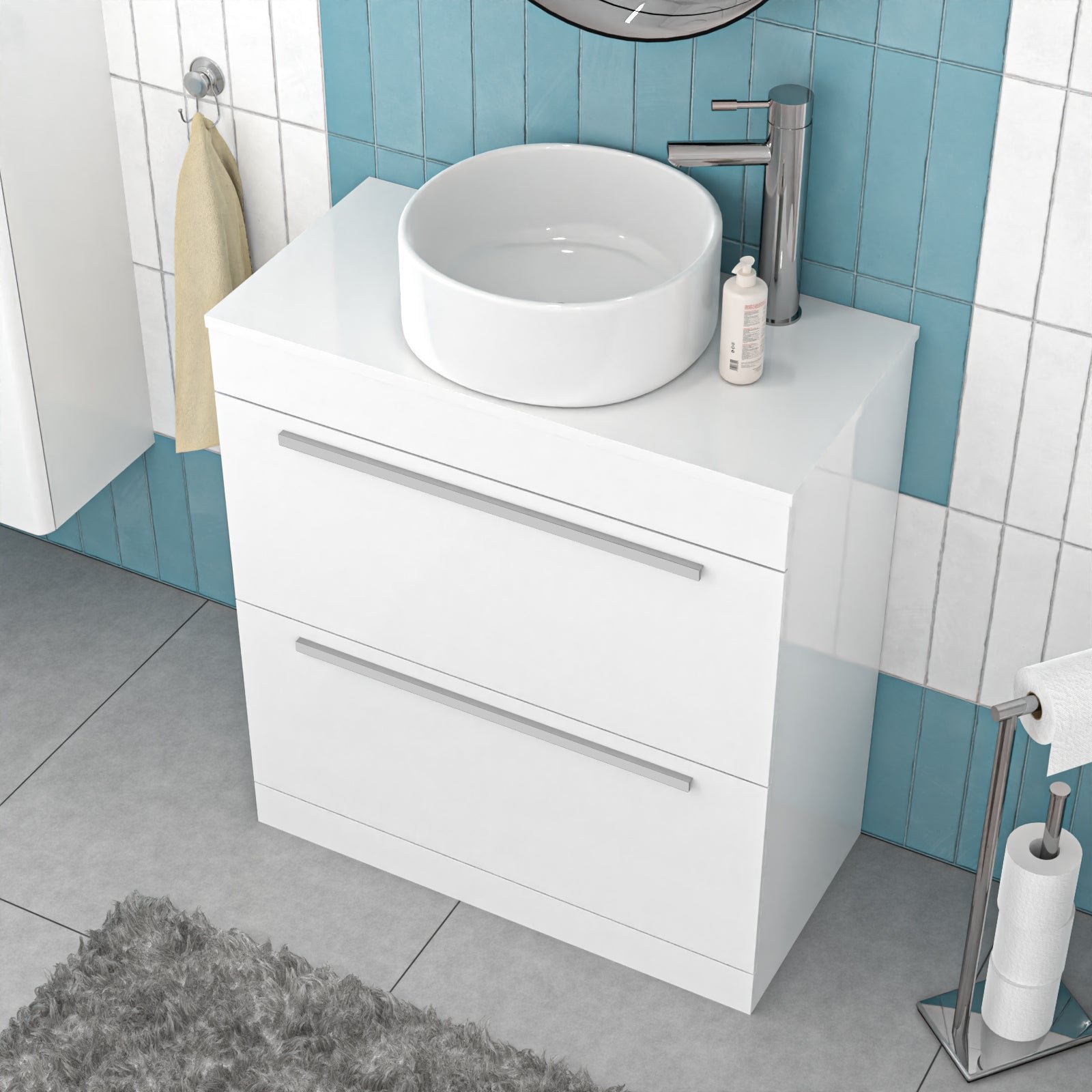 Nanuya White 800mm Vanity Cabinet & Round Counter Top Basin Sink Unit