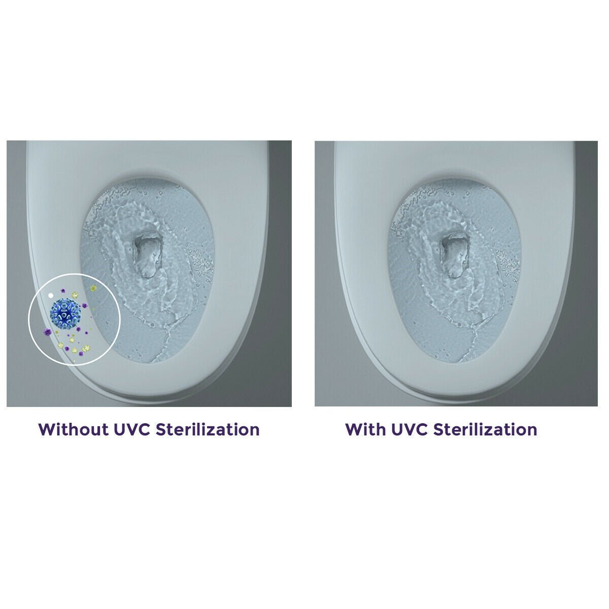 The toilet also comes with a stylish UVC Light Sterilizer that sanitizes your toilet seat inside and out to make sure it’s hygienic and bacteria-free! When you close the cover of your toilet seat. the sterilization mode would be activated. If the seat cover was opened during the sterilization mode. the process would be stopped immediately.