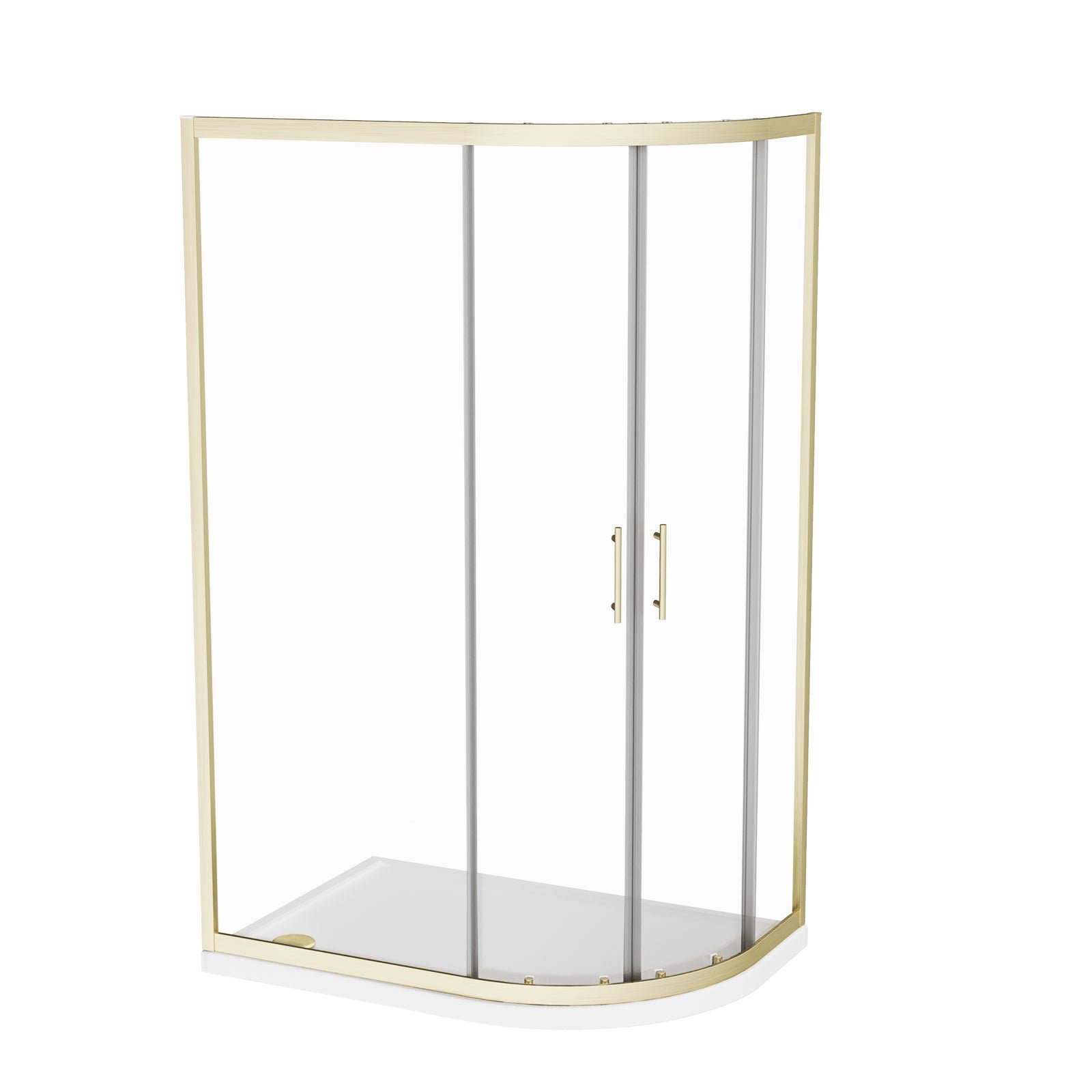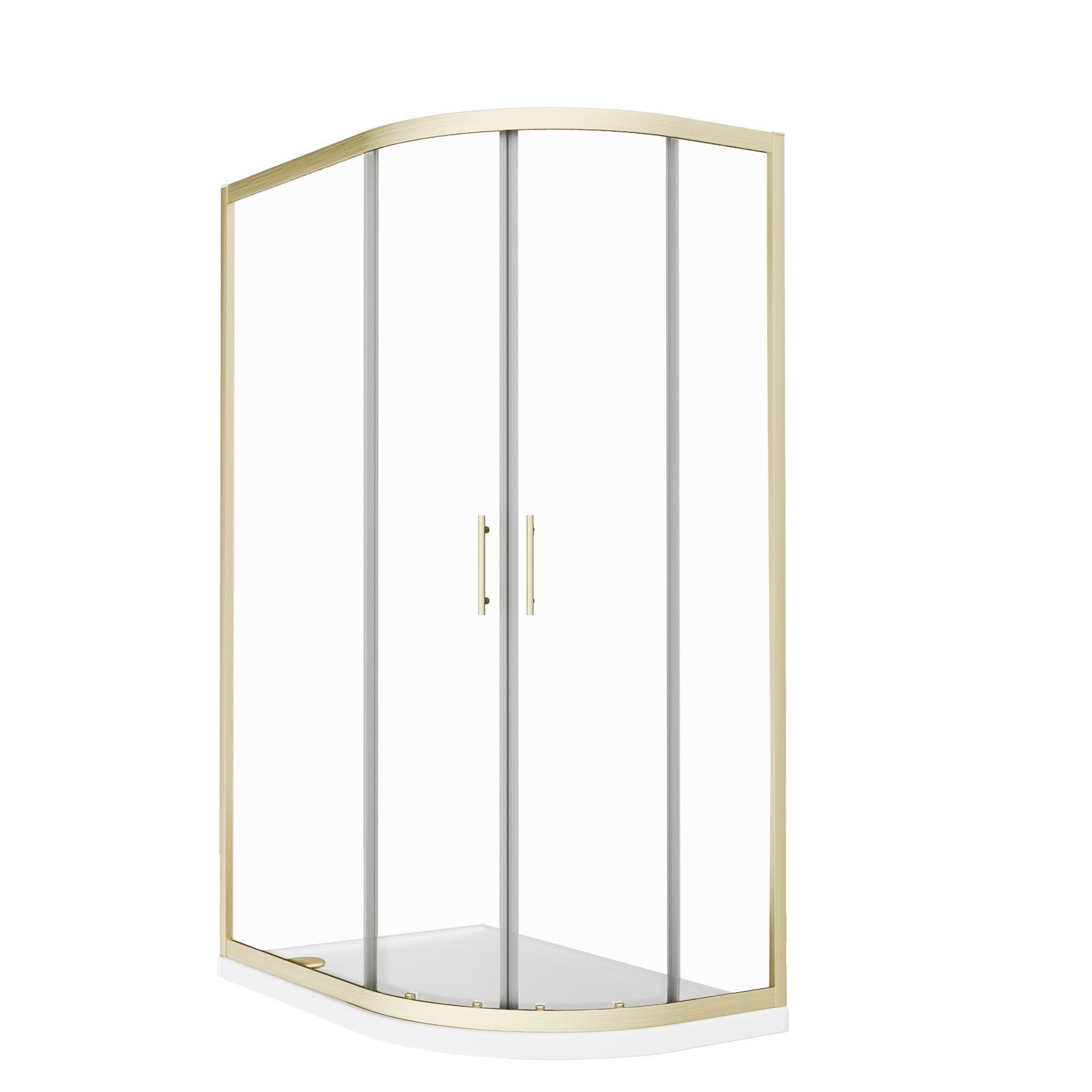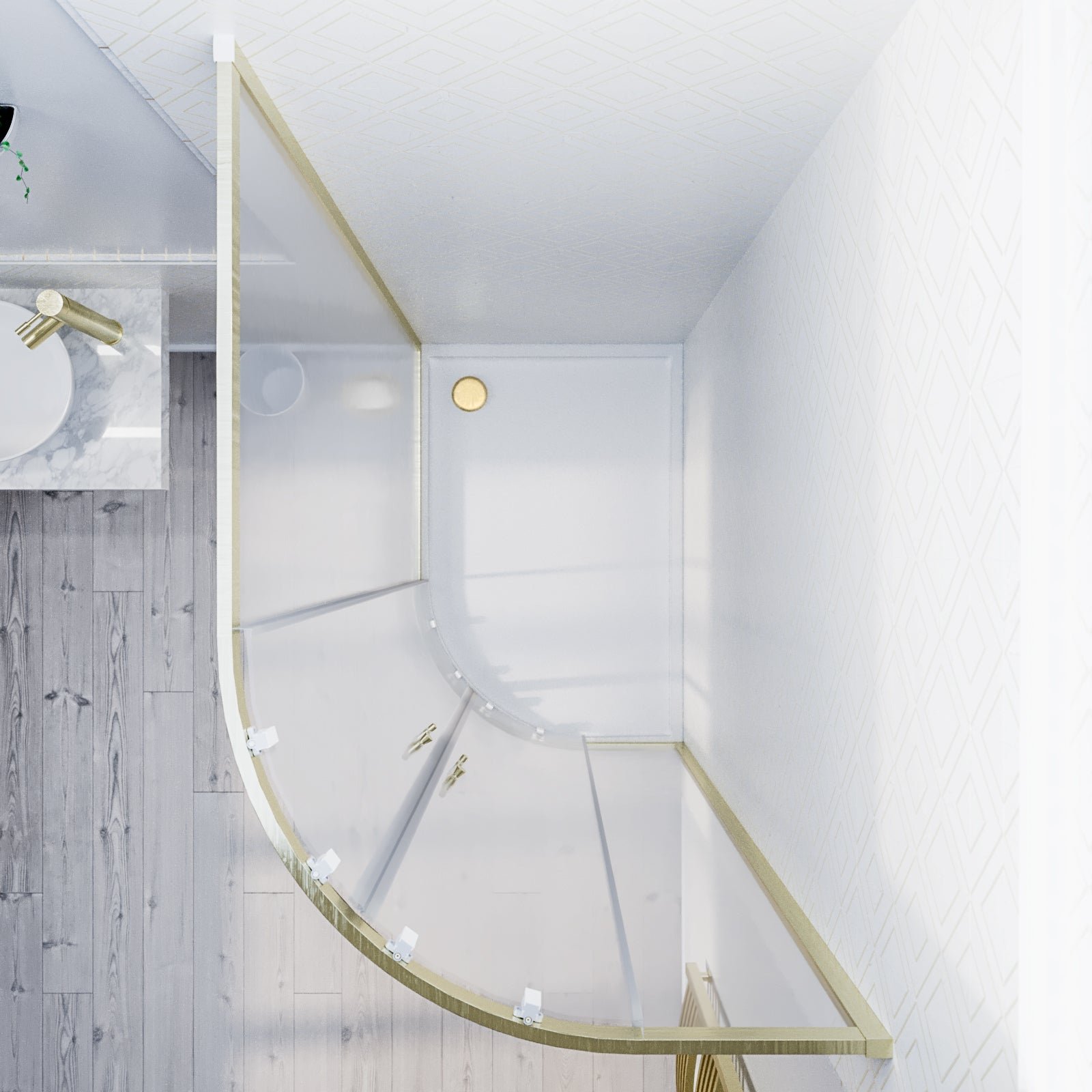 This quadrant shower enclosure in a brushed brass finish comes with 6mm tempered glass which is specifically easy-clean-glass. The shower doors with a smooth. sliding mechanism and brushed brass shower door handles gives this shower an elegant feel. It’s not a problem if your walls are slightly positioned at the wrong angle as this enclosure adjusts by 20mm. The brushed brass finish will compliment contrasting light or dark coloured interiors and gives a modern look to the corner of your bath or shower room. Matching. taps and mirrors are also available.
