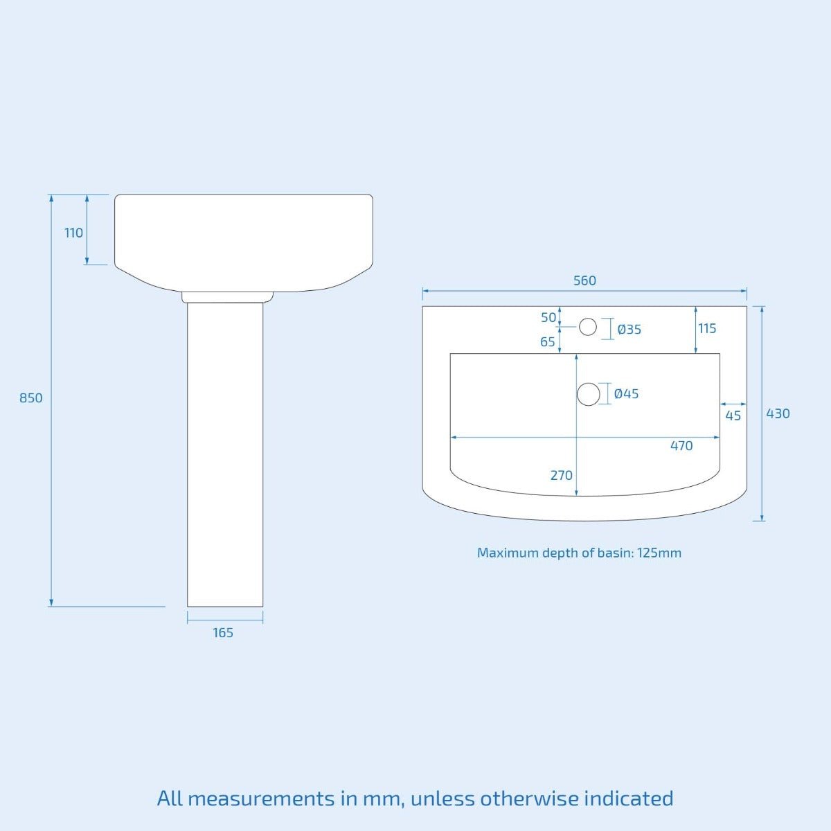 Made from high-quality materials. making it durable and long-lasting. The pedestal basin comes with 1 tap hole to pair with our large selection of basin mixer taps.