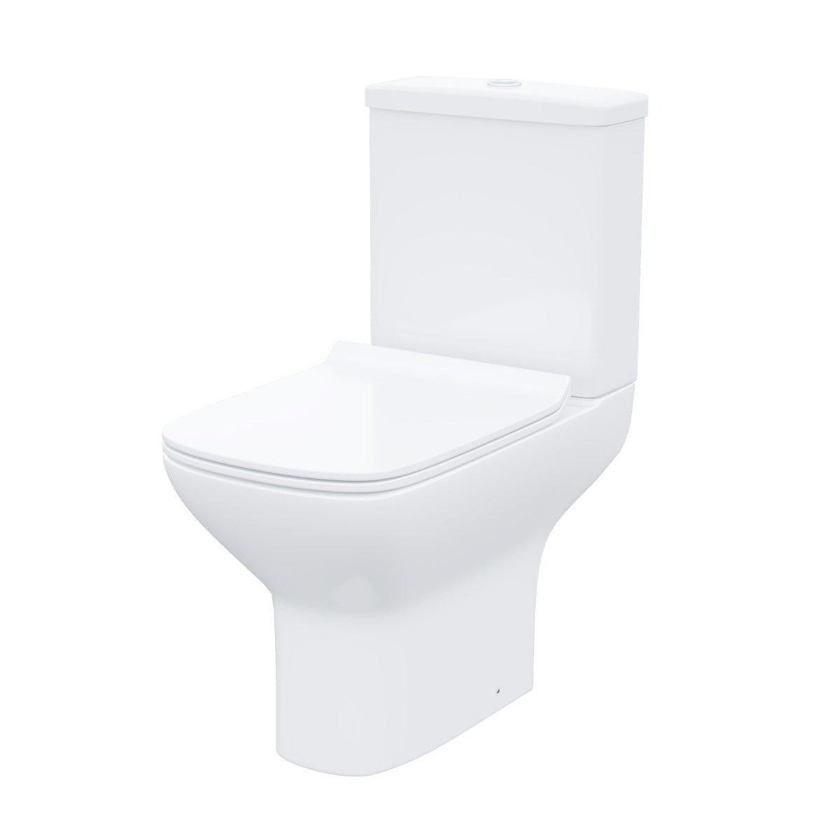 This beautiful 560 mm full pedestal Square basin comes complete with a ceramic rimless close-coupled toilet.