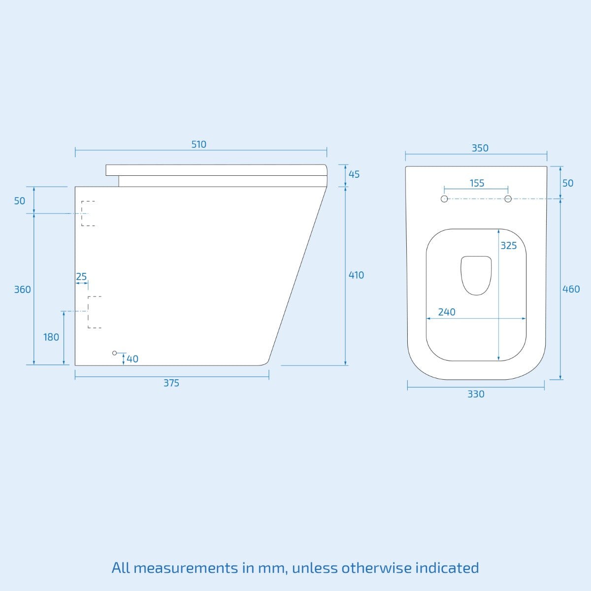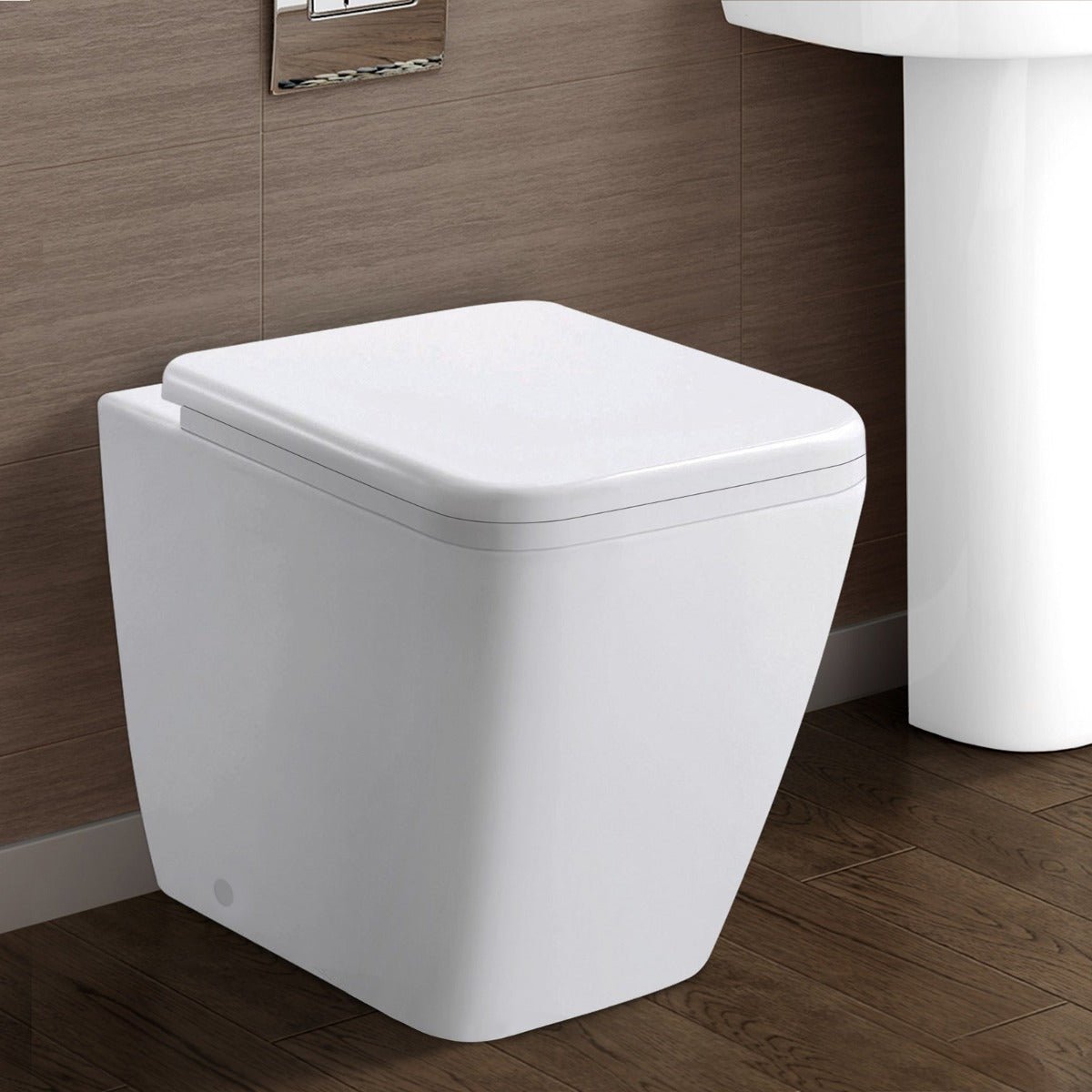 This back to wall toilet pan and seat is an ultra-modern designer shape. Mixing with subtle curves and clear-cut direct lines. this toilet is made from white Vitreous China. covered with a high gloss finish which makes the toilet stand out.