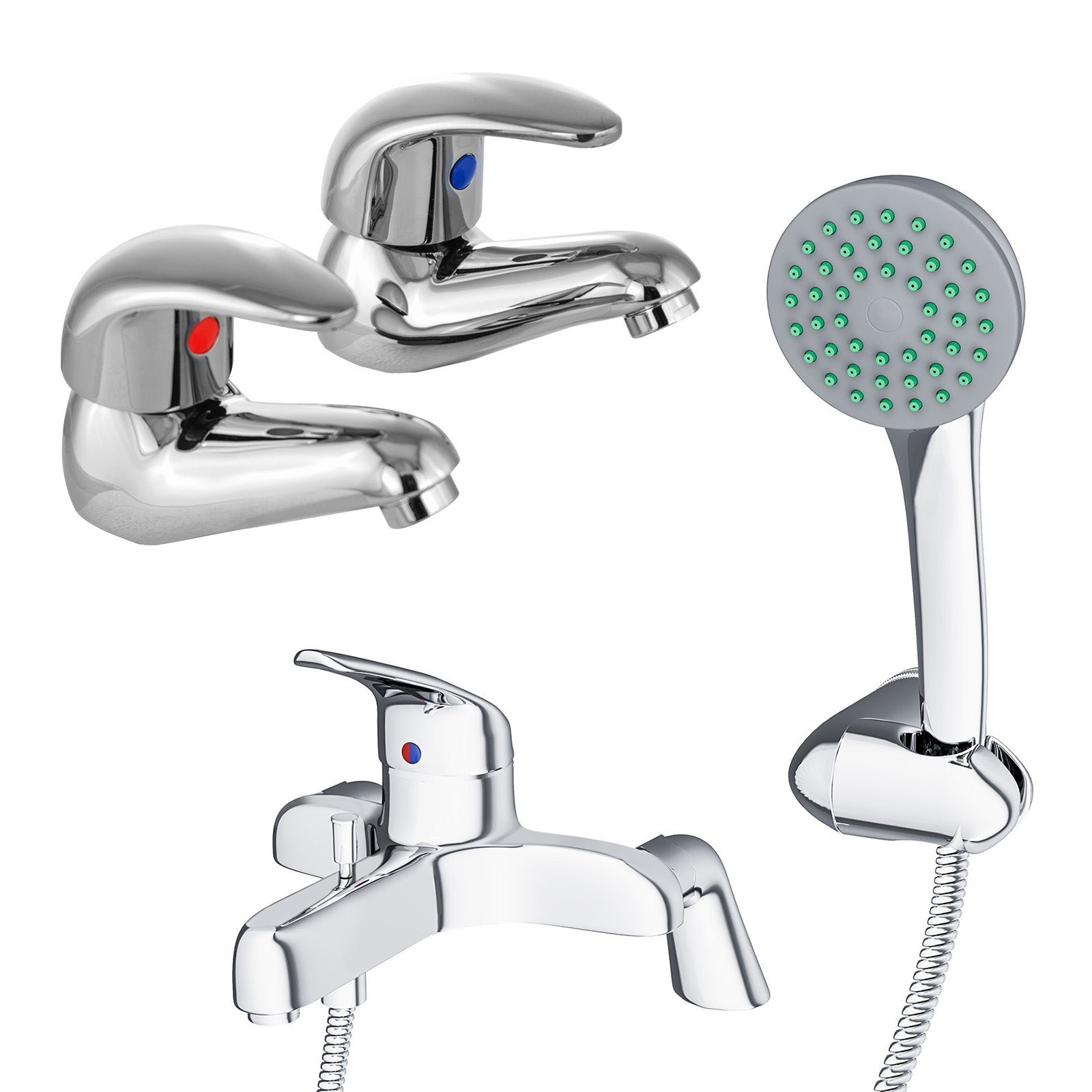 Studio Contemporary Set Of Twin Basin Taps & Bath Shower Mixer Tap With Handheld Kit