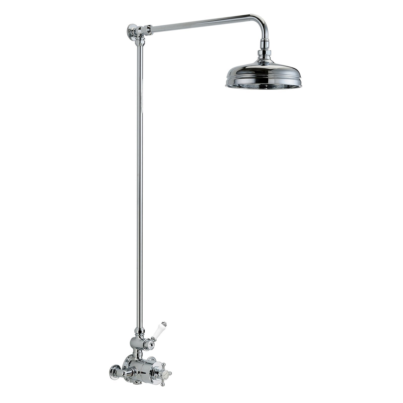 The solid brass riser rail comes with a 200mm brass shower head. The shower kit is complete with a traditional exposed valve which operates a single outlet. The valve comes with a ceramic lever which controls the water flow and the water on/off for the main shower head and the cross handle in the middle of the valve provides ease of use and allows you to control the temperature.