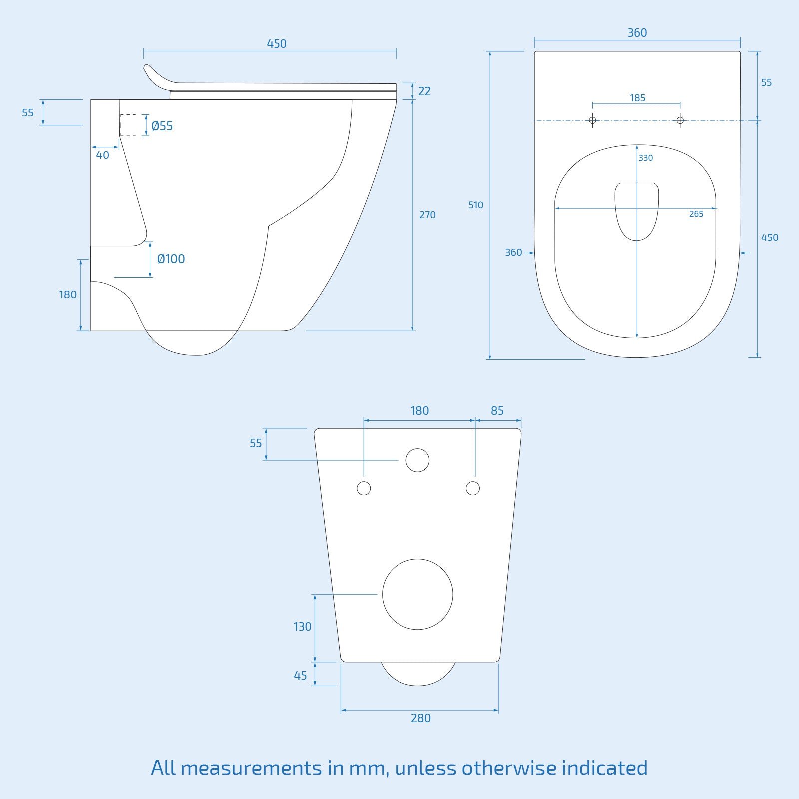 - Effortless Cleaning: Rimless feature ensures easy maintenance and enhanced hygiene.